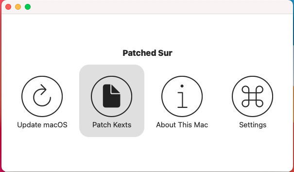 5. 登录 Big Sur,发现问题 Wi-Fi无法使用,感觉是驱动没有安装,找文档,发现Big Sur 的安全模式更高,无法用优盘打开Big Sur硬盘,后来发现 Pathced Sur 有一个安装完成后的步骤,我没有运行,我运行后,发现有一个选项,就是Patch Kexts,可以安装Wi-Fi和USB Patch,于是运行,重启,发现Wi-Fi可以正常使用,目前一切正常